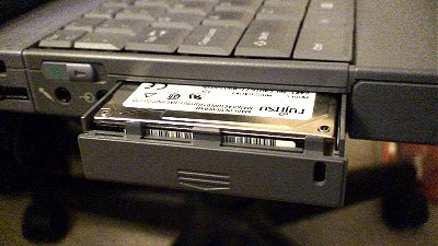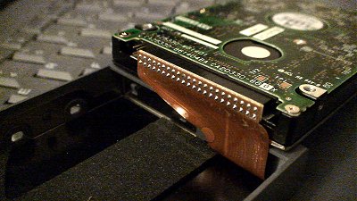 Replacing the Hard Drive on the Sony VAIO PCG-748 NotebookThe hard drive on the Sony VAIO PCG-748 is easy to remove and replace. It almost feels like it has a built-in removable drive tray. Too bad I don't have multiple trays, otherwise, I could swap hard drive and operating systems all day long. The hard drive tray is located on the left side of the notebook computer, by the power button. The photo below shows the drive tray cover. Attached Image: Chieh Cheng To remove the drive tray, all you have to do is to slide the cover downward (shown in the photo below). Attached Image: Chieh Cheng Next, simply pull the cover outward and the hard drive slides right out. The photo below shows the hard drive tray slid partially out. Attached Image: Chieh Cheng After pulling out the hard drive, you'll have to unmount the drive from the tray. The hard drive is fixed to the tray with four drive screws on both sides of the drive. Remove those screws. But before pulling the drive out of the tray, you have to be very careful. The drive tray uses surface mount ribbon cable to connect to the hard drive. One wrong move and you'd have an useless drive try. Carefully pry the drive up and flip it over (see the photo below). The ribbon cable is then fully exposed and you can slowly remove the connector from the drive. Attached Image: Chieh Cheng